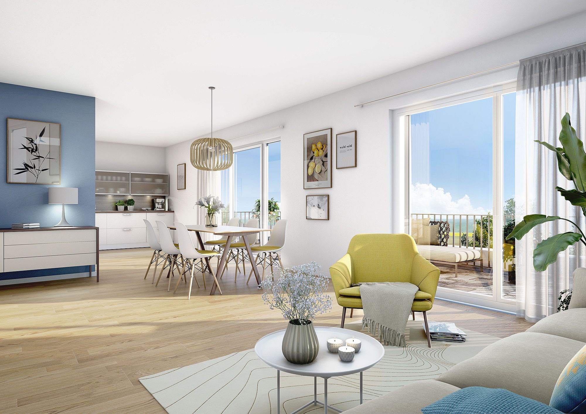 Auch bei den 23 Zwei- bis Vier-Zimmer-Wohnungen, die wir im 1. Bauabschnitt erstellen, ist Freundlichkeit Trumpf. Großzügige Fensterflächen, teilweise raumhoch angelegt, durchfluten Ihre vier Wände mit Tageslicht. Terrassen, Balkone und Loggien erweitern den Wohnraum nach außen. Die Erdgeschosswohnungen erhalten private Gartenbereiche, die teilweise von Hecken umsäumt sind und dadurch Privatsphäre schaffen. Die Grundrisse der Wohnungen sind optimal organisiert, sodass Sie Ihren Wohnraum effizient nutzen können. Doch ebenso wichtig wie das ästhetische Erscheinungsbild ist uns die Umwelt. Deshalb setzen wir auf einen energieeffizienten, ressourcenschonenden Ansatz, der den Neubaustandard Plus erfüllt – dank kompakter Bauweise, wärmegedämmter Gebäudehülle und der Vermeidung von Wärmebrücken. Davon profitieren, durch niedrigere Energiekosten, auch Sie ganz persönlich.