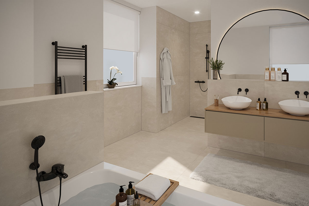 - hochwertige, moderne Badausstattung mit Unterputzarmaturen