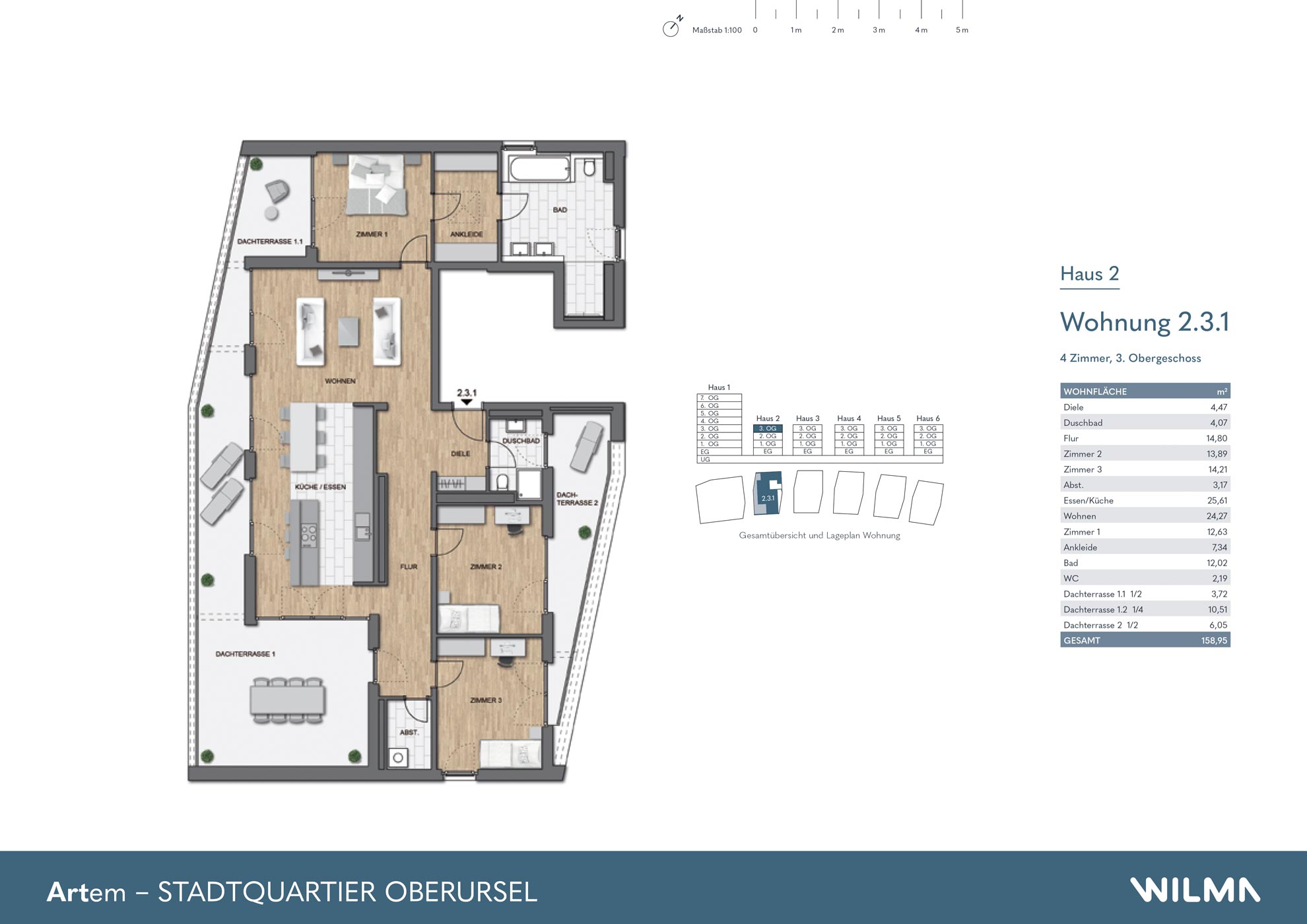 Wohnung 231 | 4 Zimmer, 3. Obergeschoss | 158,95 m² Wohnfläche | Grundriss-Download |