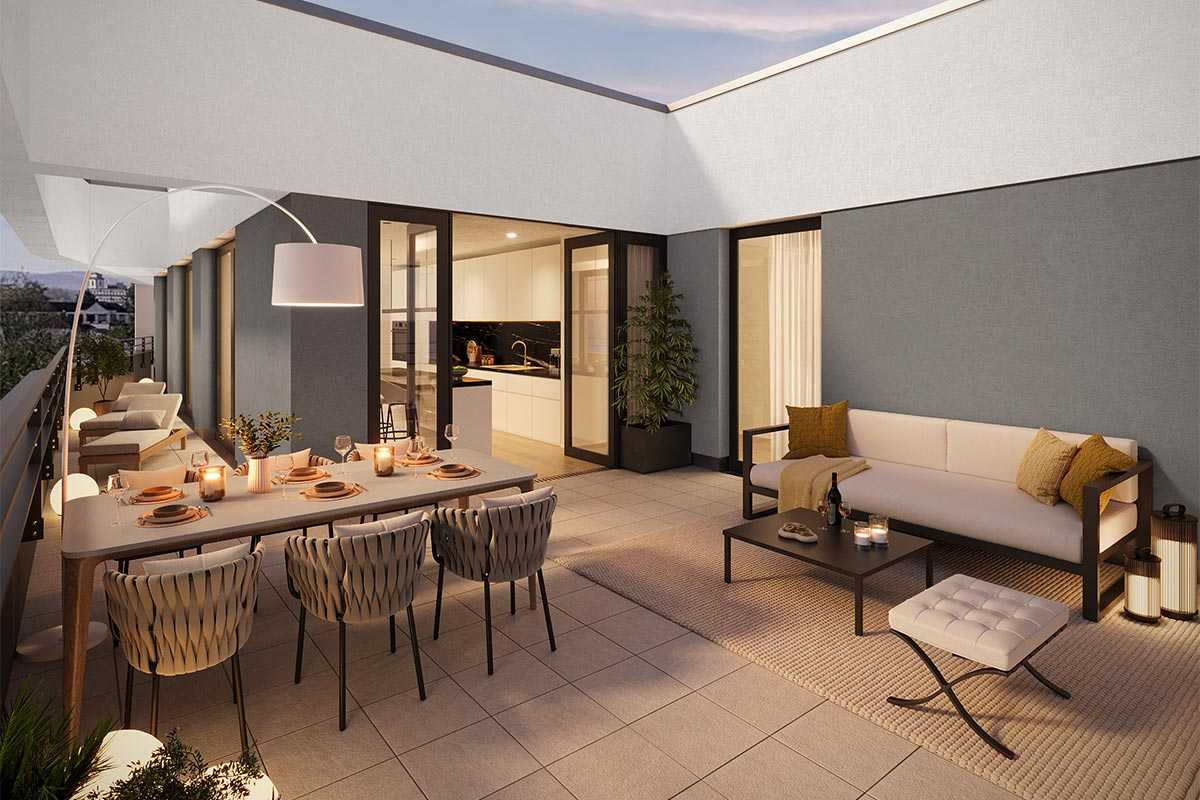 Die Terrassen, Gärten und Loggien als erweiterter Wohnraum bieten eine weitere Möglichkeit, um mit Familie und Nachbarn eine schöne Zeit zu verbringen. Die klare Formensprache sorgt dabei für ein zeitgemäßes, ansprechendes Design, das viel Entfaltungsspielraum für den eigenen Stil bietet.