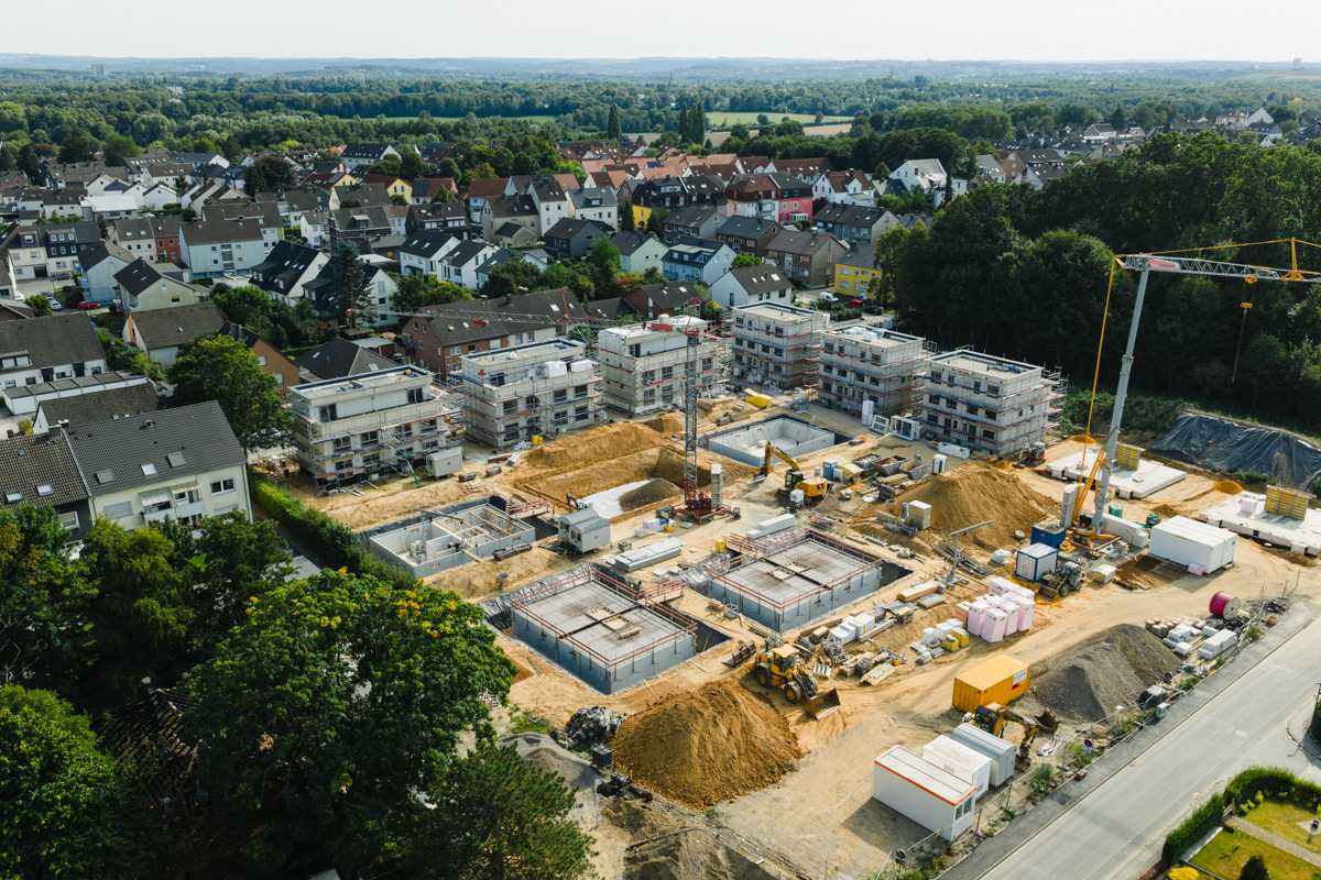 Auf dem Gelände des früheren Sportplatzes zwischen Ostholz- und Karinstraße in Dortmund-Lütgendortmund rollen die Bagger und die Baumaßnahmen sind gestartet. Die Fläche ist eingeebnet und für die Errichtung der Baustraßen sowie die Einbringung des Kanal- und Versorgungsnetzes sind in vollem Gange. Erste Baugruben sind ebenfalls bereists ausgehoben. Wenn die Bodenplatten gegossen und der Keller errichtet sind, geht es in den Hochbau und die ersten Häuser wachsen im Projekt AM RAUHEN HOLZ.