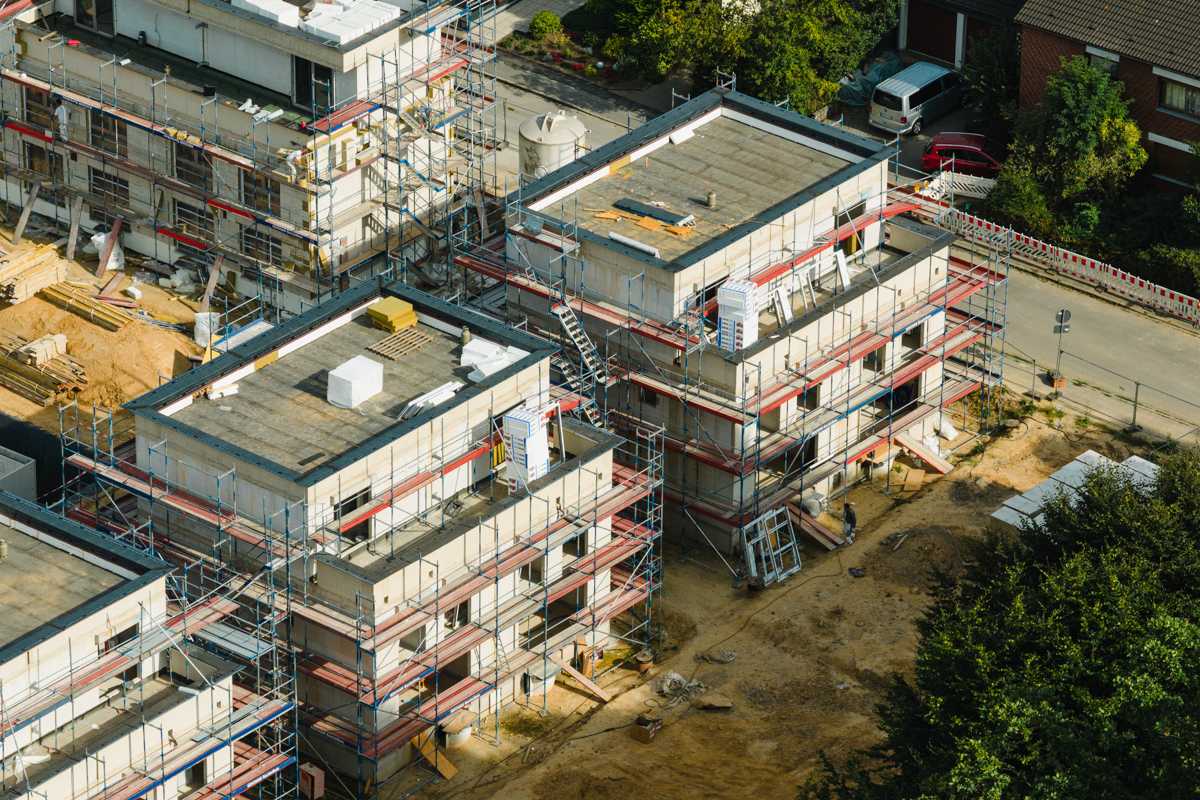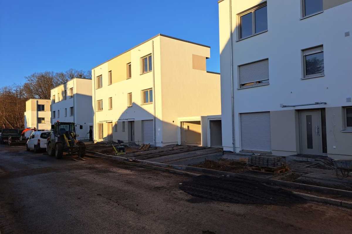 Die Häuser im 1. Bauabschnitt sind fertiggestellt, aktuell werden noch die Außenanlagen hergerichtet, damit alles für die Käufer parat ist.
