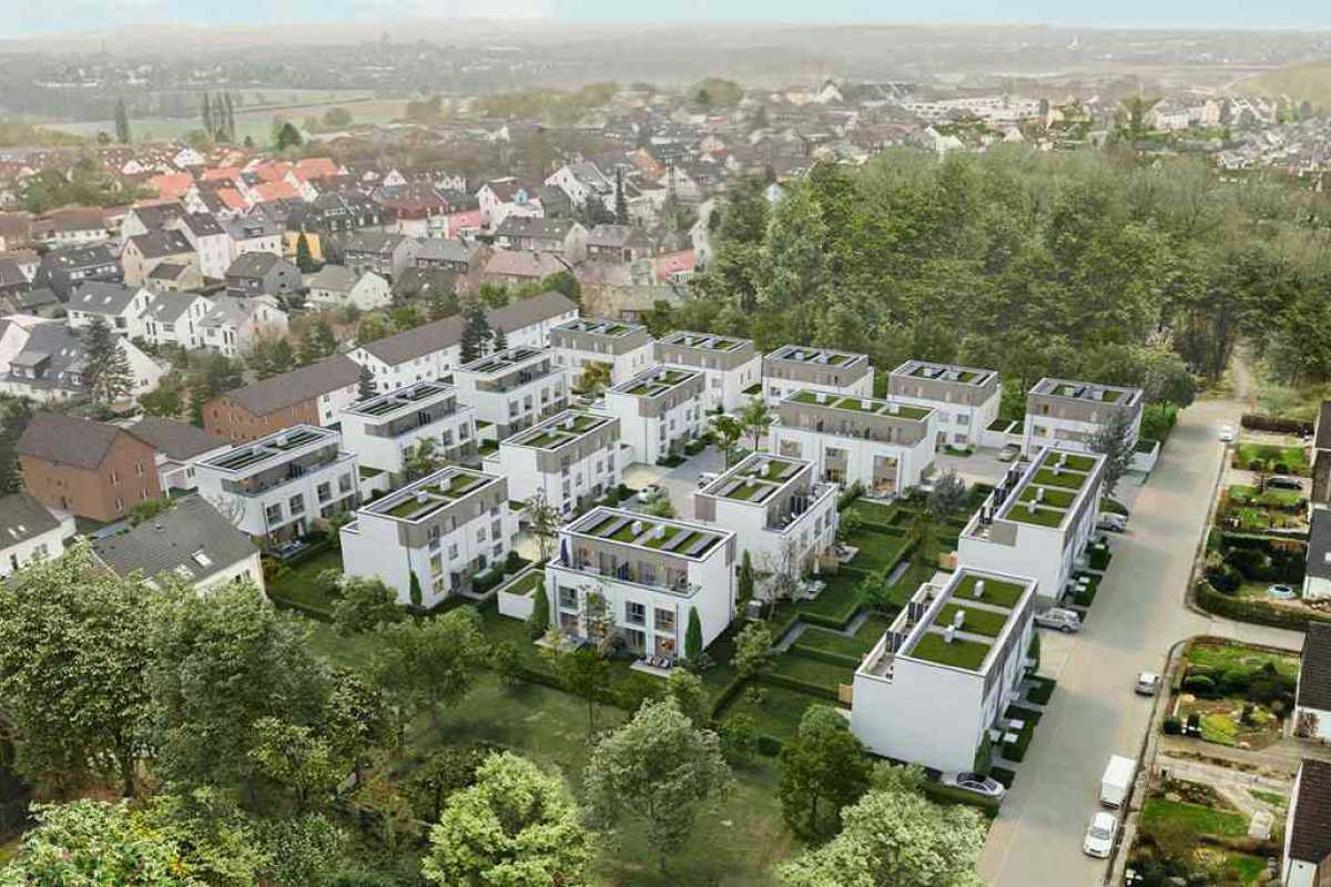 Die Wohnflächen liegen zwischen ca. 137 und 153 m², hinzu kommen die Nutzflächen, z.B. im Keller. Die gesamte Bebauung wird mit begrünten Flachdächern umgesetzt. Auf den Dächern befinden sich die Luft-Wärmepumpe sowie Photovoltaik-Anlagen zur Sicherung einer nachhaltigen und effizienten Energieversorgung.