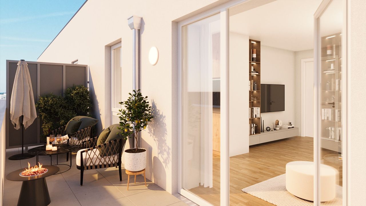 Alternativ bietet das Neubau-Quartier mehrere Mehrfamilienhäuser inklusive Tiefgarage. Verteilt auf drei Geschosswohnungsbauten, die sich der umliegenden Bebauung perfekt anpassen, entstehen hier 38 Eigentumswohnungen mit Garten, Balkon oder Terrasse. Die Gebäude haben jeweils 3 Etagen plus Staffelgeschoss und bieten insgesamt 38 attraktive 2- bis 4-Zimmer-Wohnungen mit wohldurchdachter Raumaufteilung.