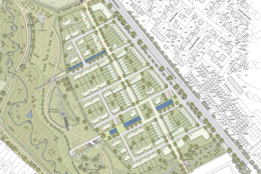 Willkommen im Wohnquartier AM AUENPARK in Selm. Entdecken Sie unsere vielfältigen und inspirierenden Haustypen. Finden Sie Ihr neues Zuhause in grüner Lage mit besten Aussichten für die Zukunft.